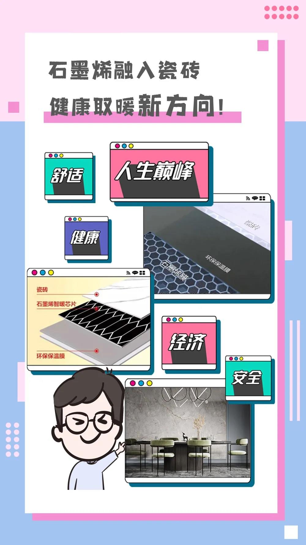 出圈的创新营销,离不开出色的硬核产品,据了解,冠珠瓷砖在新型饰材的研发上一直领跑同行,石墨烯智控发热瓷砖作为代表作之一,目前深得广大家庭、房企的青睐。该产品由瓷砖、石墨烯智暖芯片、环保保温板三部分组成,充分发挥石墨烯优异的导热性能,能实现99%电热转化率,较传统采暖方式节能35%以上。