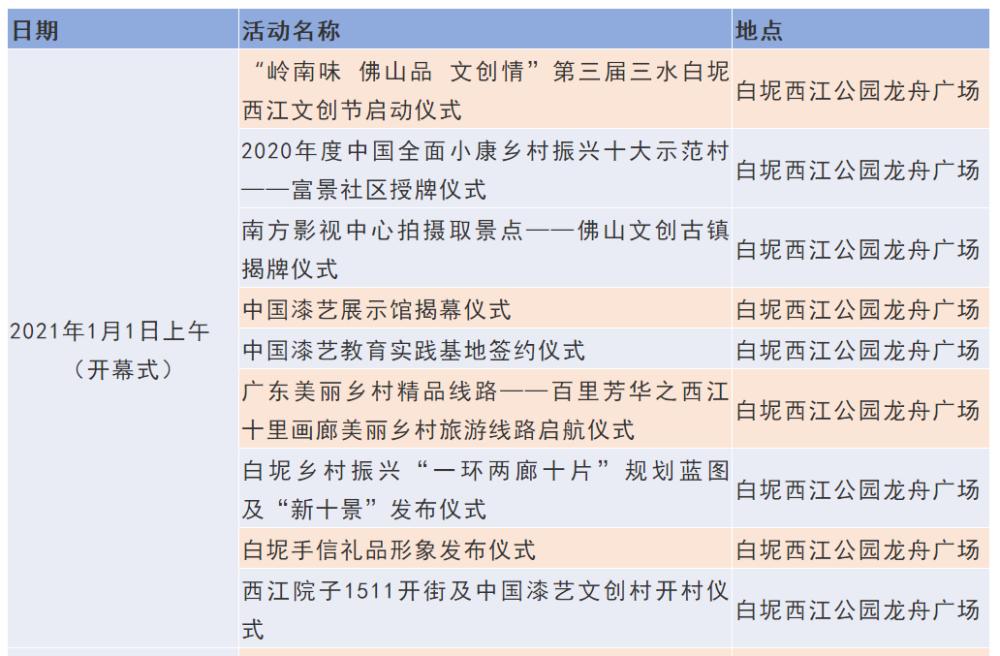 “岭南味 佛山品 文创情”第三届三水白坭西江文创节将在2021年1月1日—3日上演。网红音乐节、西江非遗美食文化节、大型音乐喷泉劲爆音乐晚会……一大波重磅精彩活动将轮番登场,一连三日嗨翻天,吃喝玩乐花样过元旦。