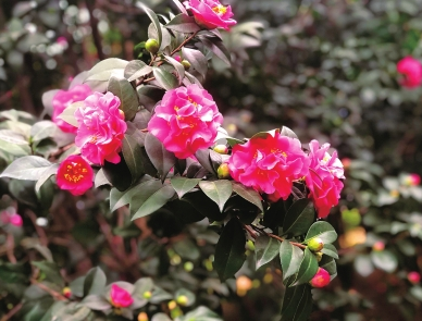 1月10日,记者来到佛山植物园,看到不少游人慕名而来,或拍照、或驻足欣赏,陶醉在花丛中尽享浪漫。游走在园内,看着冬日里争相斗艳的山茶花,红的、白的、粉的、黄的一簇簇开满枝头,动人心弦,总忍不住与之亲密合影。有些还未完全盛开的茶花,也露出了点点粉红的花骨朵,“娇羞”的模样让人更加喜爱。