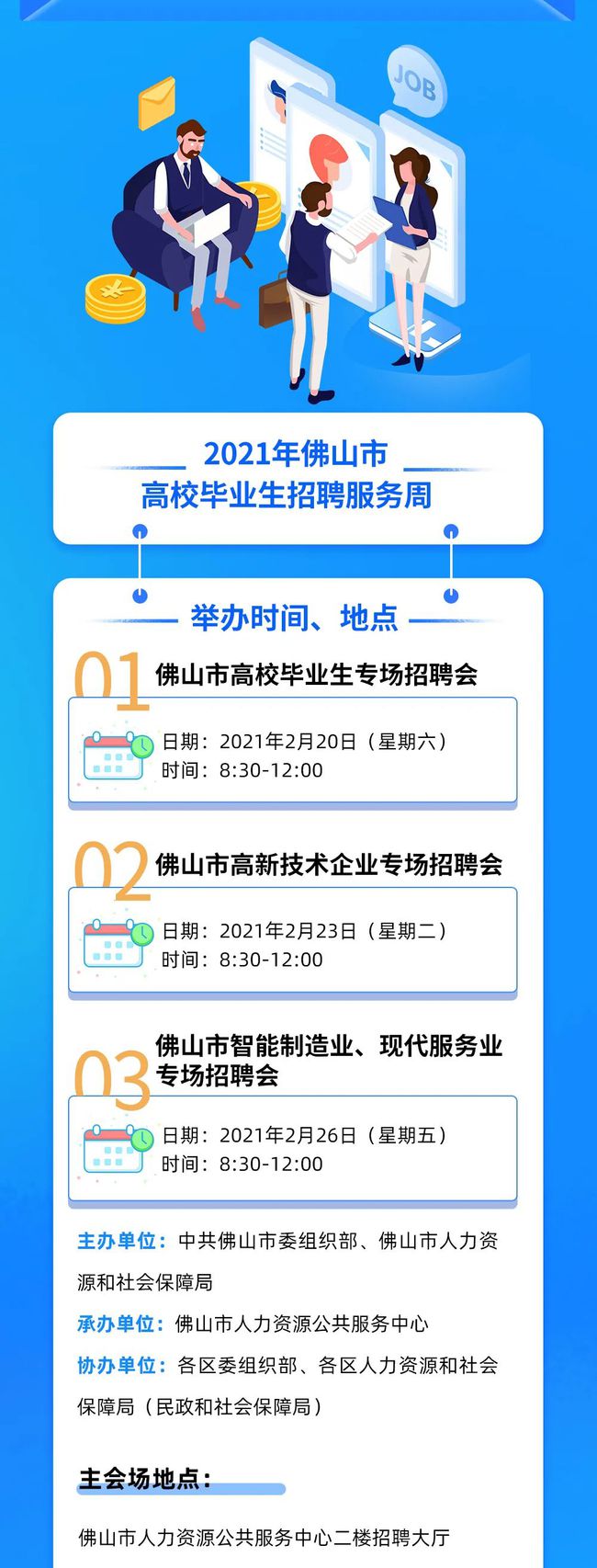 招聘服务方面,2月20日,佛山2021年高校毕业生招聘服务周系列活动首场线下招聘会在一市五区联动举行,全市参会企业224家,提供岗位数5890个,最高月薪达20000元,后续还有2场市、区联动高校毕业生专场招聘会。3月起,佛山还将陆续开展“2021年度春风行动”、“南粤春暖”就业服务系列现场招聘活动月等活动,全市将举办54场次的线下现场招聘活动,促进“稳就业”“保就业”。