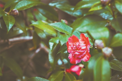 生长于清晖园的山茶古树特写。(清晖园供图)