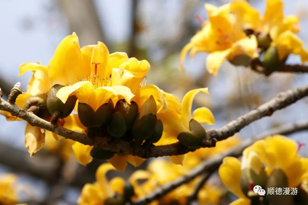 顺德杏坛填马东村的黄橙色木棉花也竞相绽放,红橙辉映,美不胜收。(图/顺德漫游)