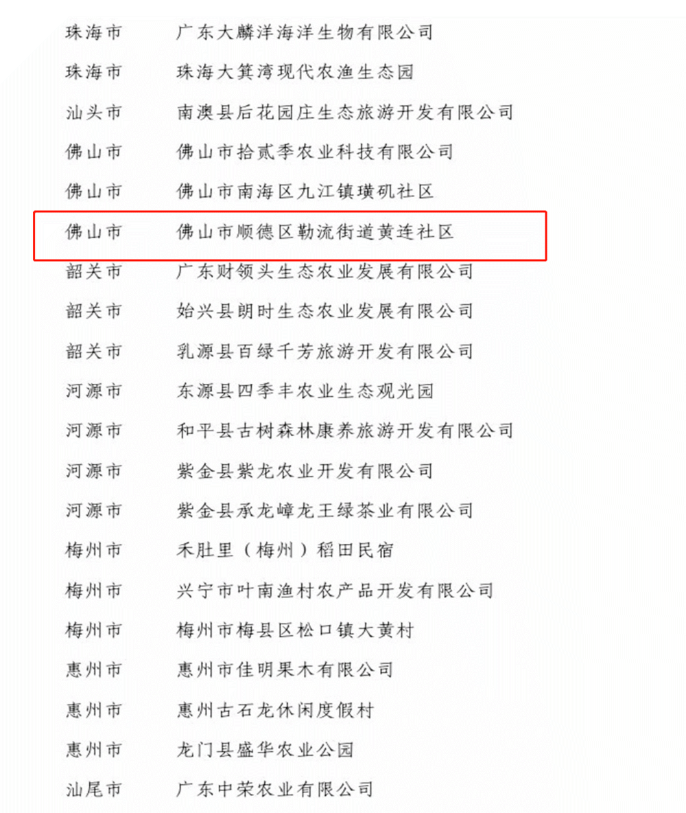 经各地推荐申报、第三方专家评审和网络公示,认定达到省级休闲农业与乡村旅游示范镇(示范点)标准的10个镇为2020年度全省休闲农业与乡村旅游示范镇,60个单位为2020年度全省休闲农业与乡村旅游示范点,其中,勒流街道黄连社区入选2020年度全省休闲农业与乡村旅游示范点。