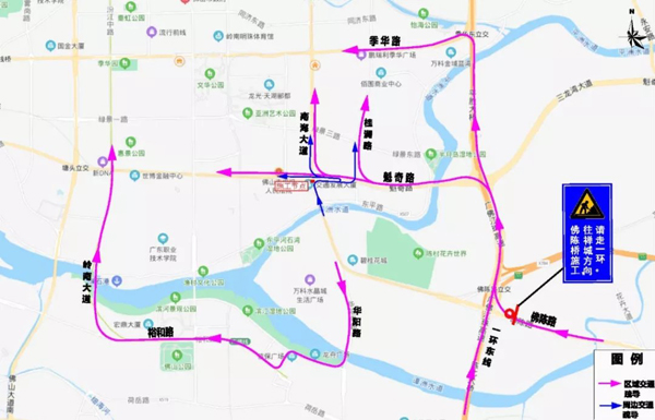 往佛山一环方向:佛陈路—佛山一环—季华路/魁奇路—桂澜路/南海大道