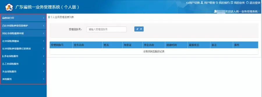 对于需要后台审批类的业务,平台还支持业务进度查询,在主界面右上方点【我的业务】,进入进度查询界面,输入受理回执号查询已办理的业务信息。