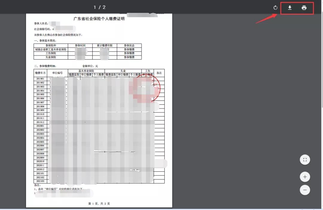 进入个人缴费证明查询页面,选择起止年度点【查询】,在【查询】记录的右边“操作”栏点【打印】,即可生成个人起止年度内的个人缴费证明,并支持下载和打印。
