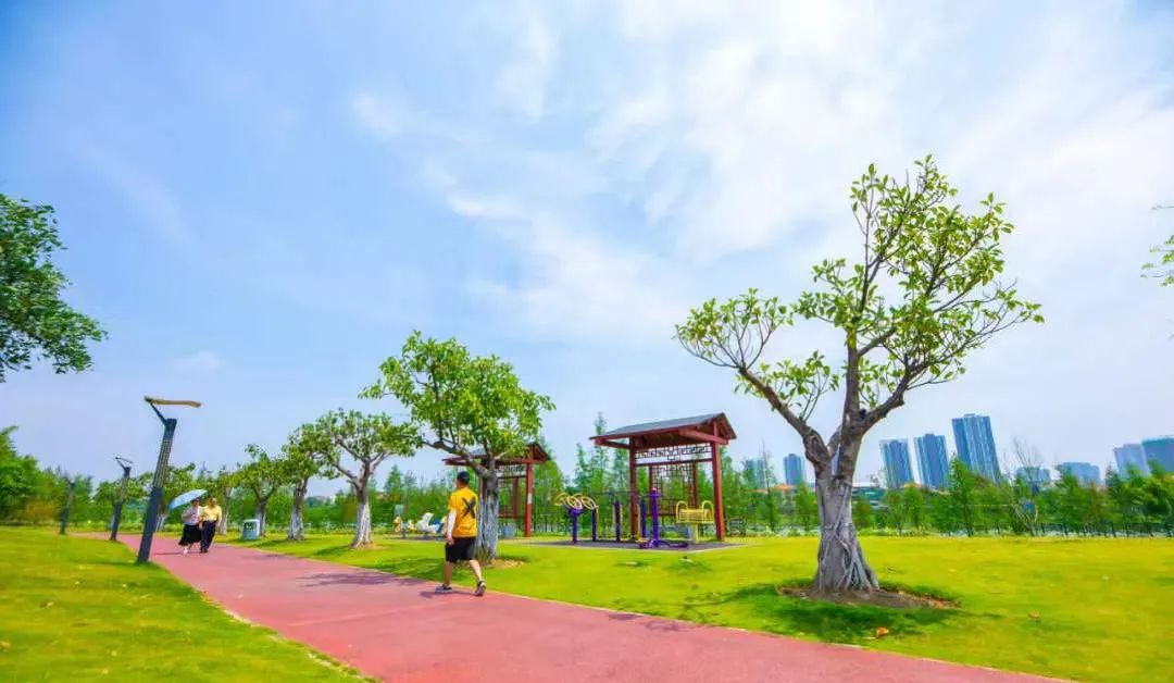 君兰河堤公园经过改造后,驿站、亲水平台、景观亭等设施一应俱全。走在河堤旁一边观赏日落,一边感受大自然的惬意。