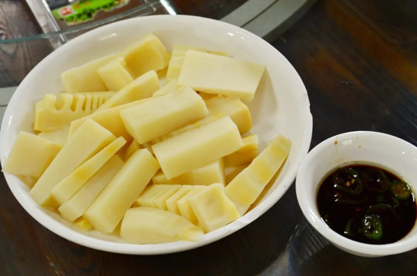 端午节前后,雨水充沛,张槎沙口笋正值生长的黄金阶段。沙口笋外形头大尾小、中间弯曲成烟斗状,外表金黄、内里雪白,带着淡淡的竹子清香。凭借着口感清甜、味鲜无渣的特色,沙口笋美名在外,甚至登上国宴餐桌。