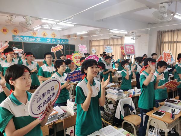 校领导们到班送祝福迎来学子热烈欢迎。/佛山日报记者邹婷婷摄