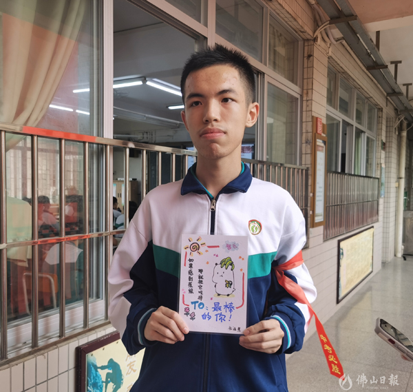 初三(9)班班主任送给学生们的手绘贺卡。/佛山日报记者邹婷婷摄