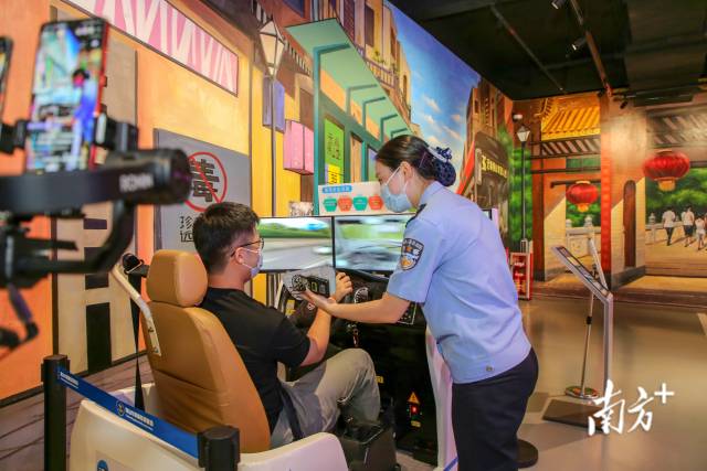 而在佛山禁毒教育基地内,直播镜头对准了一个个新型毒品模型,配合着禁毒宣传民警详细地展示和讲解,大家对伪装成跳跳糖、口服液、口香糖等的新型毒品有了全新的认知;在毒驾体验区,当体验者的模拟车辆开出去不到几米就发生了侧翻,让大家直呼毒驾太可怕;而在吸毒前后面容对比体验区,当看到原本健康的人,在吸毒后出现了肌肉消瘦、皮肤暗黄、双眼失神等面容特征后,更是让人触目惊心……