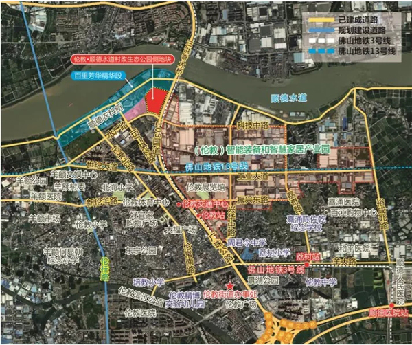 (1)东⾯紧邻105国道、佛⼭地铁三号线伦教段,规划建设的佛⼭地铁13号线经过,交通便利。