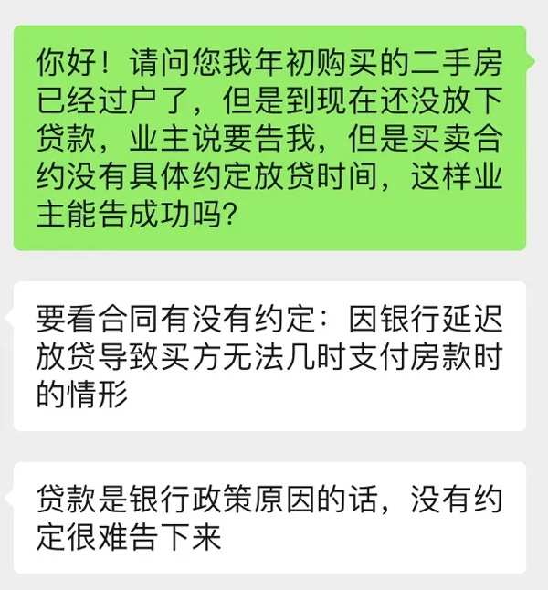 若没有相关约定,放款期限不属于买卖双方控制因素,双方都无存在违约行为,那么即使卖家真的告上法庭,买家也是无责的。