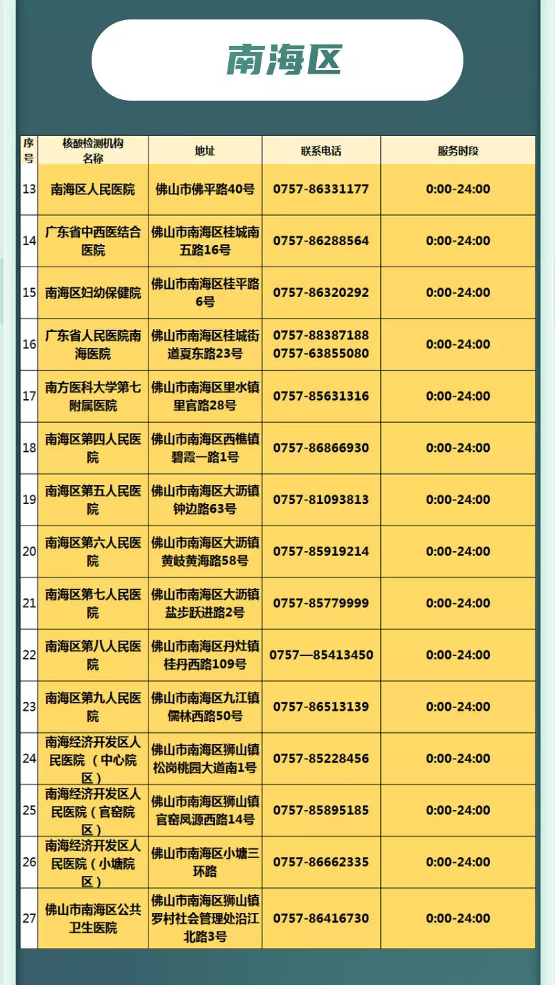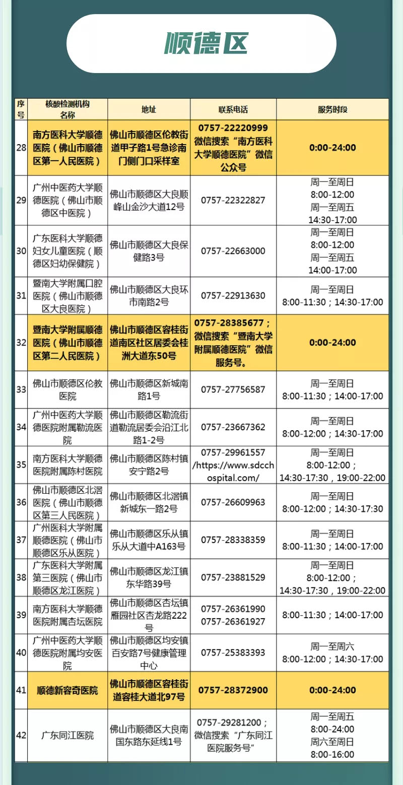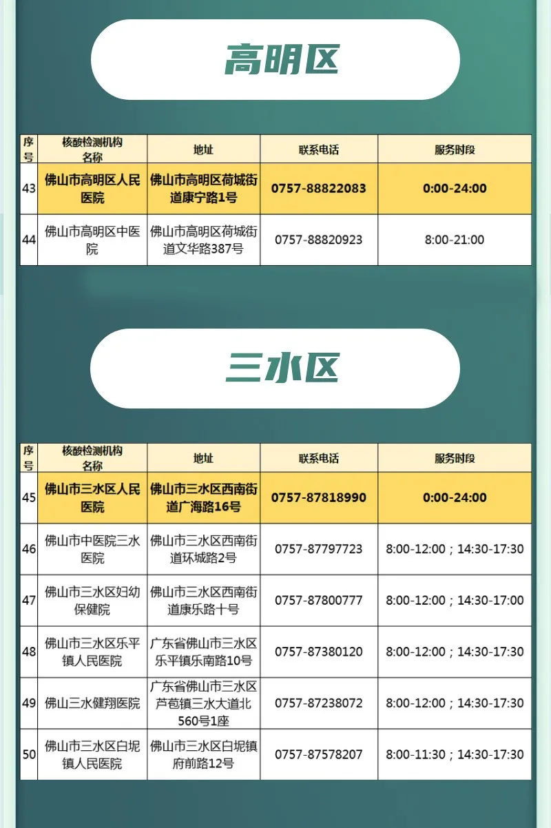 佛山疾控提醒:有需要的市民朋友可到以下地点做核酸检测!