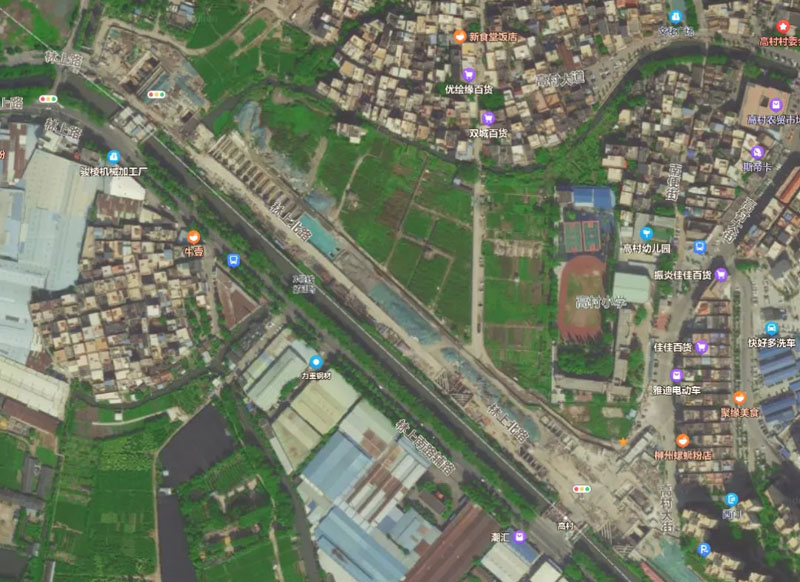 高村站及高村站-北滘站明挖区间位于佛山市顺德区北滘镇高村,车站布置于林上北路与高村大道交汇处,高北明挖区间沿林上北路延伸至西滘村清沙桥。高村站长267.5m,明挖段长443.788m,施工占用林上北路范围全长约800m。