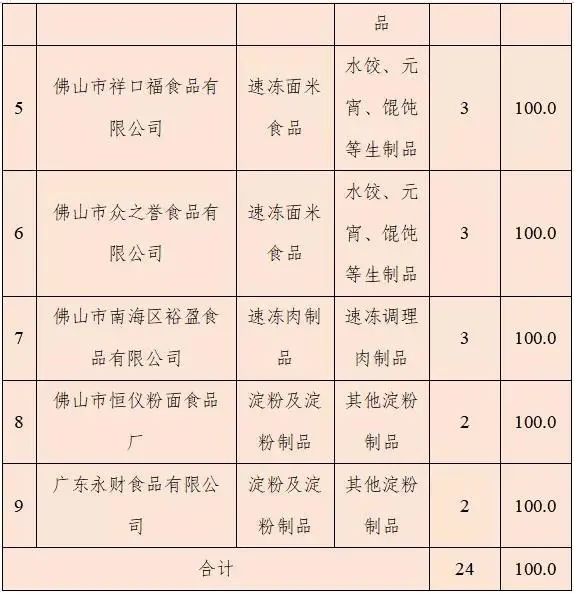涉及食品生产企业 9 家
