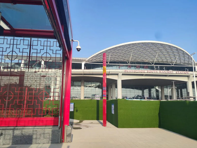 广州南站是2号线一期的终点站,位于广州市番禺区国铁广州南站与石山大道之间的西广场下方,可与广州地铁2、7号线等线路换乘。