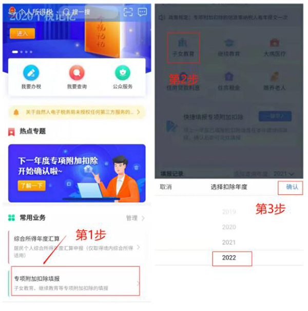 2022年度个人所得税专项附加扣除已开始确认了!