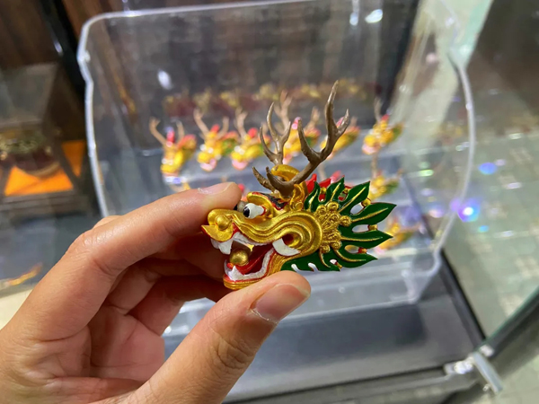 △ 小小的龙头极大程度地还原真实龙船的龙头。/曹萍萍摄