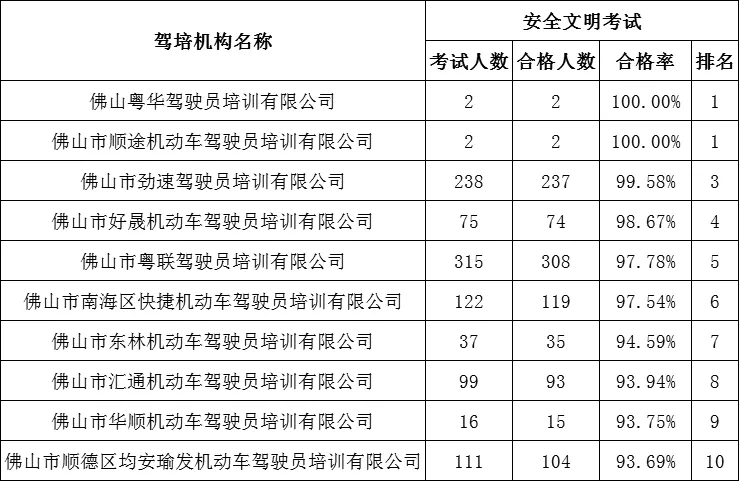 12月份驾考“成绩单”出炉,佛山这些驾校合格率最高