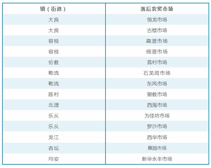 对于“落后农贸市场”,各镇(街道)将约谈市场开办方(管理者),督促改进提升;组织相关部门加大执法监管力度,提高食用农产品抽检频次,从严查处各类违法违规行为。
