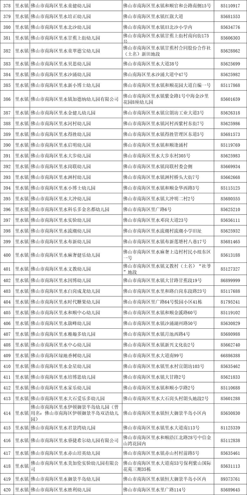 根据南海区教育局公布的《2022年南海区幼儿园已领取办学许可证名单》,截至今年6月,南海区已领取办学许可证的幼儿园共420所。目前,南海区幼儿园涵盖公办、集体办、民办非普惠以及民办普惠四种类型,最全名单如下: