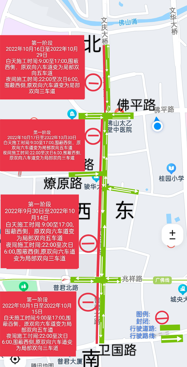 禅城区市东路(文庆大桥至卫国路)9月30日起将进行阶段性节点临时占道围蔽施工