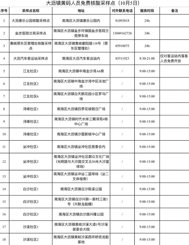 附件:10月5日大沥镇区域核酸检测安排表、10月5日临时暂停自费核酸检测点明细表