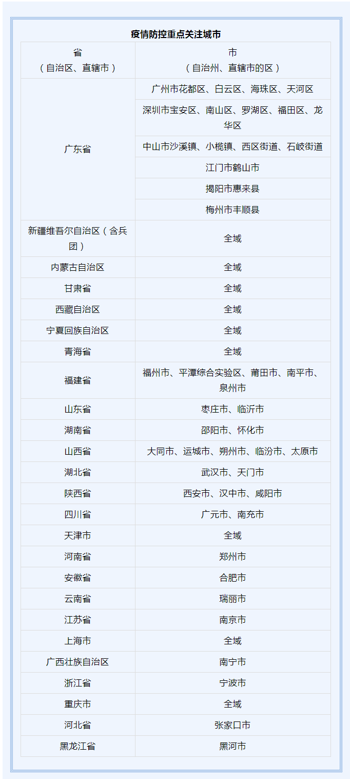 因疫情防控需要,请在相关时段到过以下重点场所的人员,务必第一时间向所在社区(村)、单位、居住酒店报备,做好个人防护,并配合采取相应的疫情防控措施。