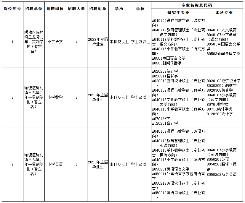 说明:本次招聘是顺德区教育局统一组织的第一批招聘,具体安排另行通知。后续将会有第二批招聘,请关注“绿色陈村”微信公众号的招聘信息。