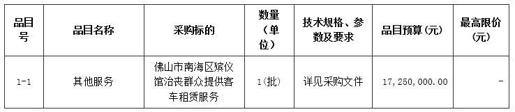 项目名称:佛山市南海区殡仪馆客车租赁服务项目