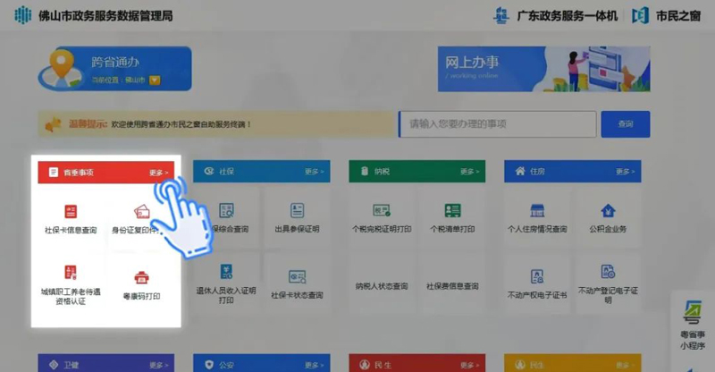 操作指引:在线下自助机首页界面点击【省垂事项】进入到【粤智助】事项界面,点击【我要查我的港澳居民居住证】,刷身份证认证,点击【打印】即可。