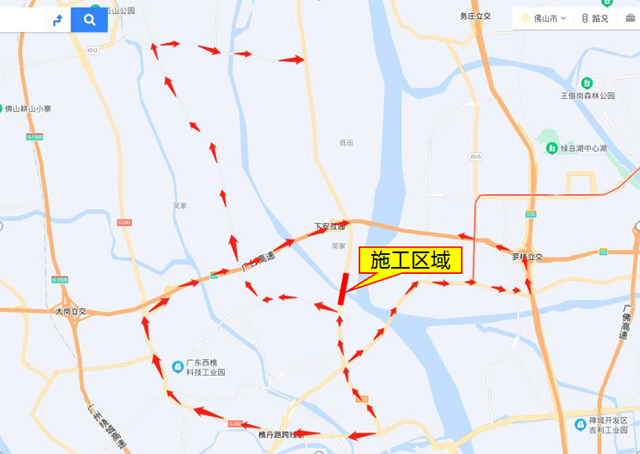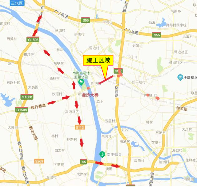 往狮山方向:可提前从桂丹西路转至樵金北路至广台高速或者深海高速绕行。