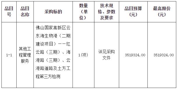 采购包1(佛山国家高新区云东海生物港(二期建设项目)——红云路(三期)、海港路(三期)、云港路道路及土方工程第三方检测):