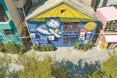 府学西街因为微改造而焕发新的活力。每一栋建筑上的彩绘都因地制宜、量身制作,作品与建筑融为一体,显得很有格调