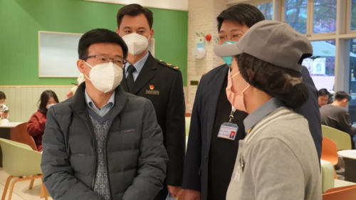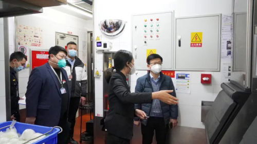 在检查过程中,何永庆听取了抽查餐饮企业负责人对日常生产经营情况的汇报,仔细询问了企业生产经营、疫情防控、物流供应等情况,并对员工身体情况、智能无接触送菜系统、餐饮外卖防疫注意事项等相关工作进行了重点检查。