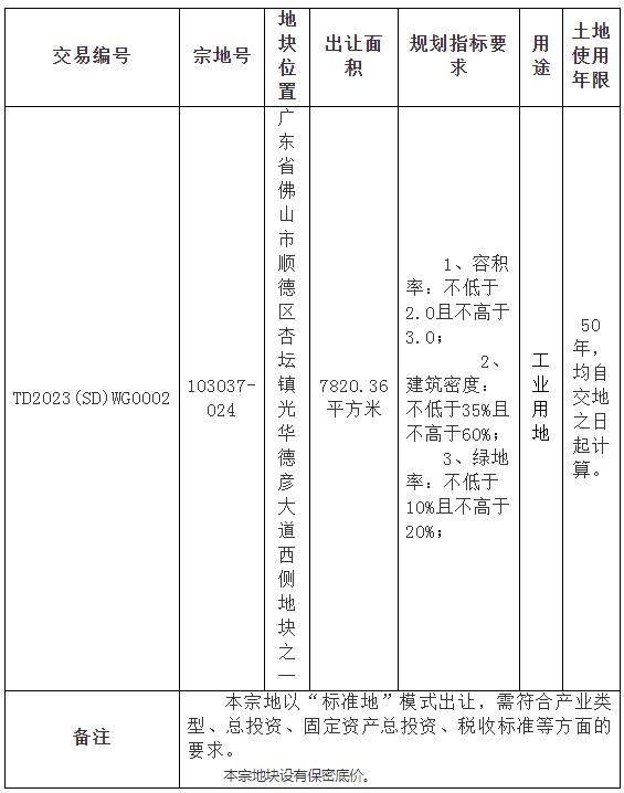 佛山市顺德区杏坛镇光华德彦大道西侧地块之一使用权网上挂牌出让公告