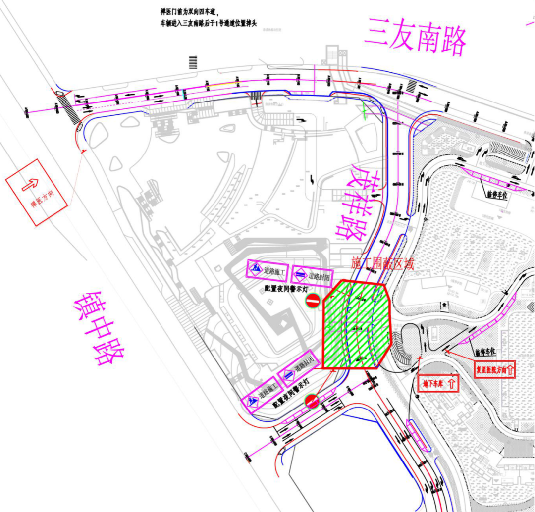 三、道路封闭期间,龙盘北路路中开口将增加隔离栏,区府西门对出路段地面虚实线改为双虚线,原区府西门驶离车辆需通过民安路-德民路-祥和路绕行。