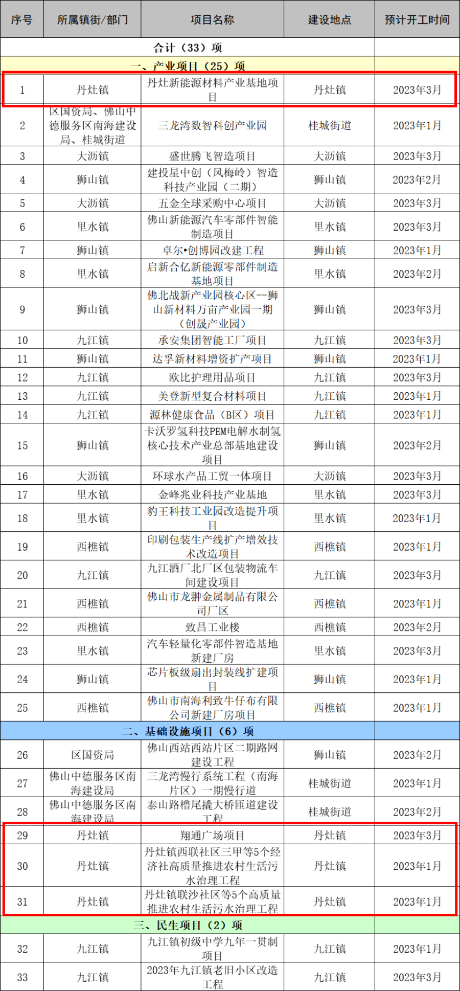 一季度开工重大项目中,南海丹灶占有4席,分别为丹灶新能源材料产业基地项目、翔通广场项目、丹灶镇西联社区三甲等5个经济社高质量推进农村生活污水治理工程、丹灶镇联沙社区等5个高质量推进农村生活污水治理工程,总投资额超54亿元。既涵盖了一批科技含量高的产业项目,又有关乎民生的基础设施项目,为丹灶高质量发展进一步提振信心、集聚动能、夯实基础。