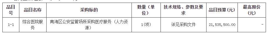 项目名称:南海区公安监管场所采购医疗服务(人力资源)