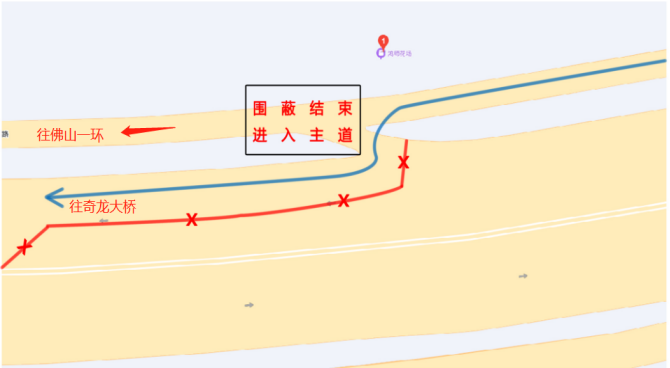 主路入口(原主道转佛山一环出口改为入口):鸿师花场