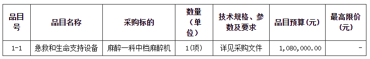 佛山市第一人民医院麻醉一科中档麻醉机招标公告