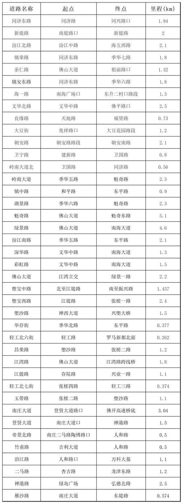 2、三达路(广海大道西路口至一环中路口)3、广海大道(环城路口至贤兴路口)
