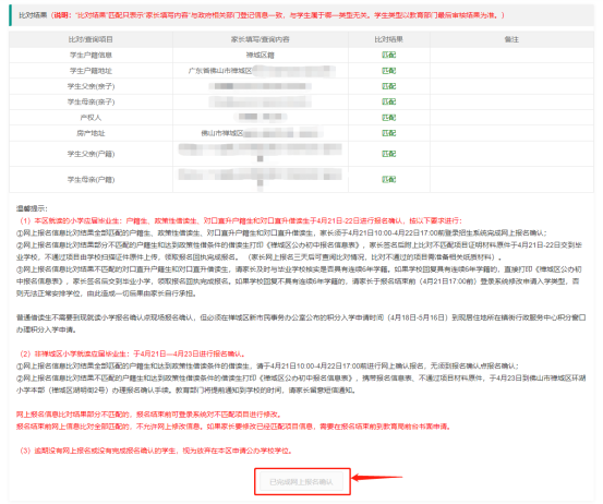 ①“网上报名确认”及“打印报名信息表”按钮在4月21日10:00开放给家长。