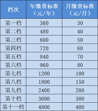 佛山市城乡居民基本养老保险缴费标准共11个档次。参保人可以自主选择其中一个档次,以按月的方式进行缴费。即使选择最高档次,每月也只需400元。