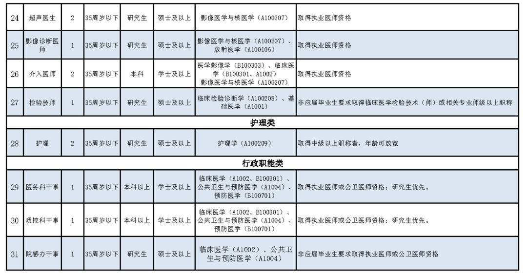 5.具有医学类专业大专或以上学历,专业要求详见职位表;
