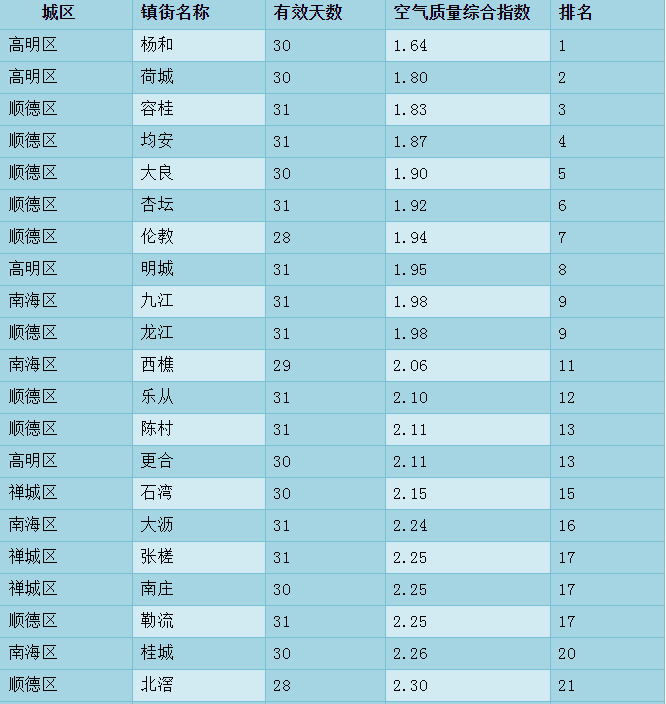 为落实各区、镇(街道)大气污染防治主体责任,进一步改善我市环境质量,自觉接受社会监督,佛山市对全市五区和32个镇街的空气环境质量面向全社会公开。空气环境质量以空气质量综合指数同比变化的形式进行公开,7月份空气环境质量结果通报如下: