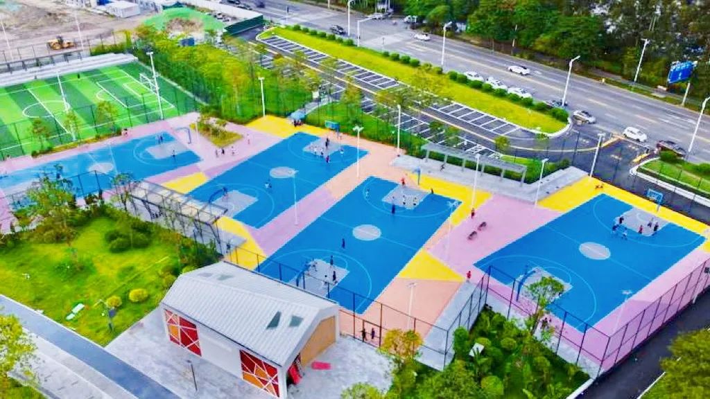 王借岗森林公园通过对旧厂房分区改造,扩大健身活动区和互动玩乐区,将5公里跑道与绿道相连,建成一批足球场、篮球场、动感跑道等,深受年轻人的喜爱。