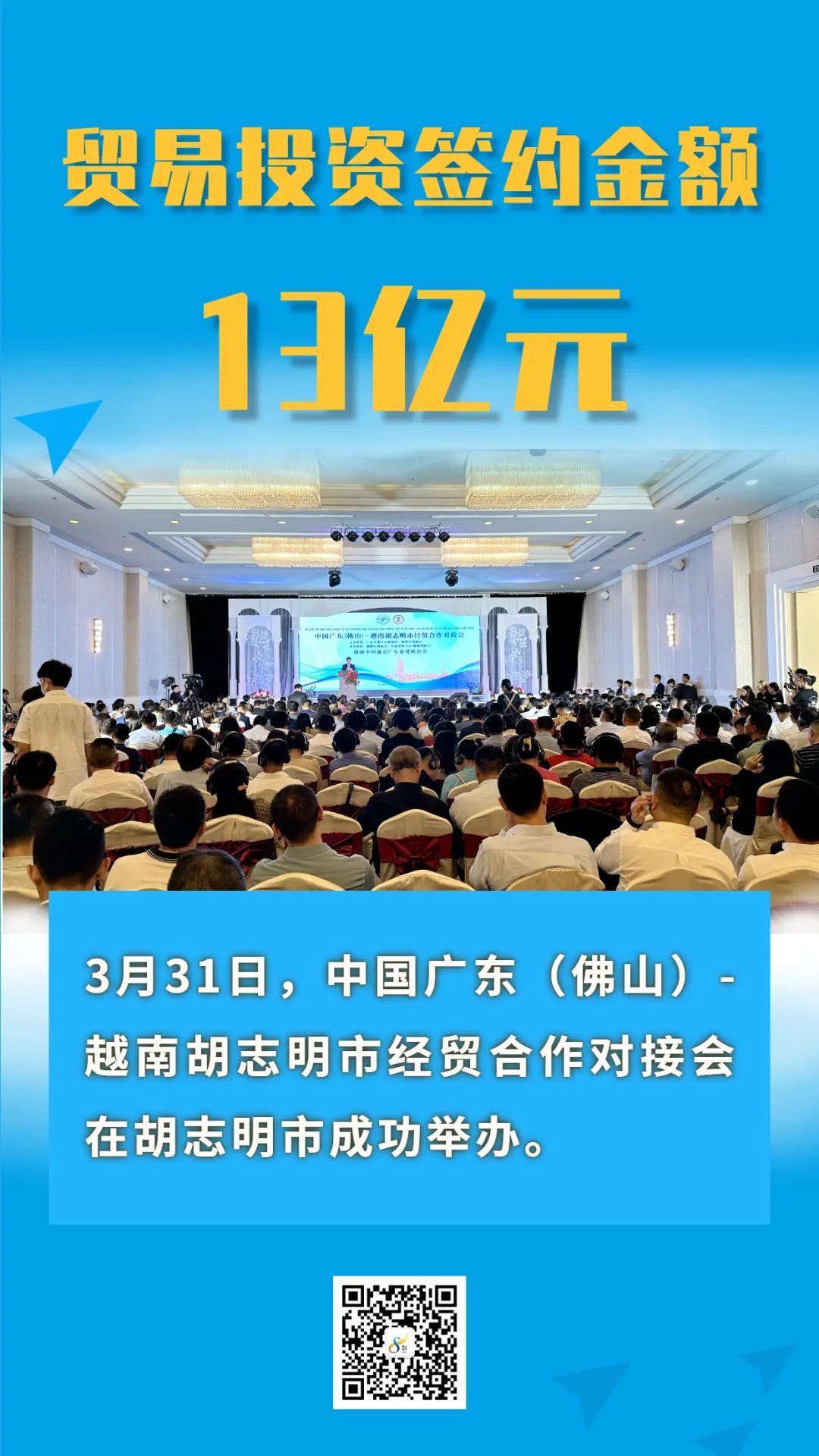 当日下午,为期半天的中国广东(佛山)-越南胡志明市经贸合作对接会在胡志明市成功举办,近500人参与了此次活动,贸易投资签约金额达13亿元。该活动由佛山市商务局、越南中国商会主办,越南中国商会广东企业联合承办,旨在针对佛山经贸现状及投资创业环境进行推介,进一步提升佛山产品在越南及东南亚地区影响力,帮助佛山企业更好地开拓东南亚市场。佛山赴越南、泰国和印尼经贸团一行参与了此次活动。