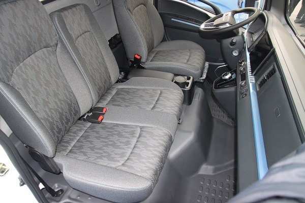 针对用户群体高舒适的驾乘需求,宇通新能源轻卡T系列产品采用乘用化内饰设计,配装智能灯光,可根据环境变化自动点亮或关闭近光灯;智能空调可自动调节风速、压缩机转速、PTC 功率、吹风模式、设定温度等;智能语音控制系统可以通过语音打开空调、调整风速、温度等,并能实现电台调整,以及天气、音视频等信息搜索;座椅设计不仅照顾到了驾乘需求,还关照到了躺卧休息,可以秒变“单人床”。